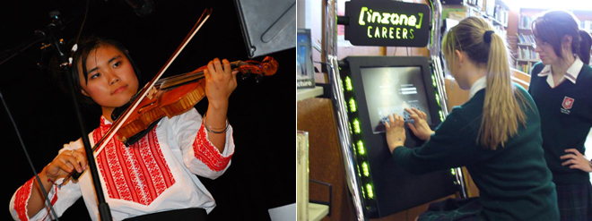 ¿þ½½·º °É½ºÀÇ Áß¿ä°ú¸ñÁß Çϳª°¡ ƯÈ÷ À½¾ÇÀε¥, ÇлýµéÀº ¿ÀÄɽºÆ®¶ó, ÇÕâ, ·Ï¹êµå, °Áî, ¾Ç±â ÇÕÁÖ°°Àº ´Ù¾çÇÑ À½¾Ç ±×·ì Ȱµ¿À» Çϸç, ÀÌ·¯ÇÑ À½¾Ç ÇÁ·Î±×·¥Áß ÀϺδ ÀÚ¸ÅÇб³ÀÎ ¿þ½½·º º¸À̽º ÇÏÀ̽ºÄð°ú ÇÔ²²ÇÕ´Ï´Ù. ¶ÇÇÑ ¹Ì¼ú°ú¸ñÀº ÀüÇг⿡ °ÉÃļ Çʼö°ú¸ñÀ̰í, »ó±Þ¹Ý ÇлýÁß ´ëºÎºÐÀÌ »çÁø, ¹Ì¼ú µðÀÚÀÎ, ÆÇÈ, À¯È, Á¶°¢ ¹× ¹Ì¼ú»çµîÀ» Àü°øÇϰí ÀÖ½À´Ï´Ù.